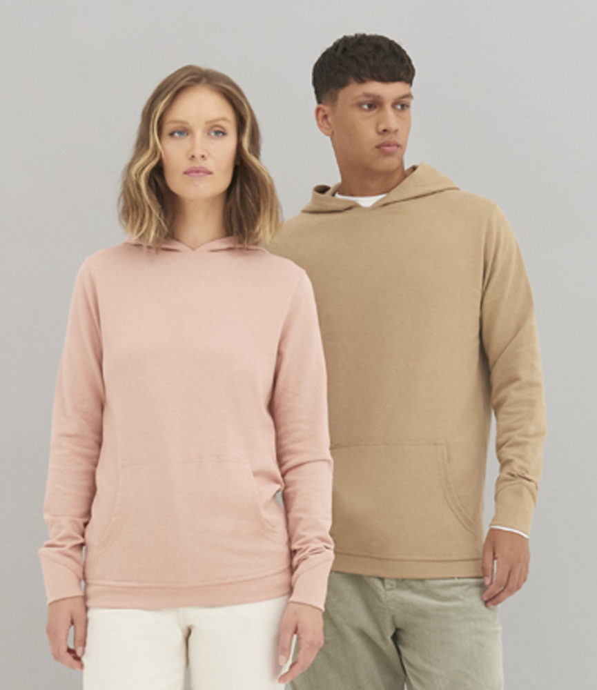 French terry. Drop shoulder style. Fashion fit. Hood with no drawcord. Taped neck. Front pouch pocket.