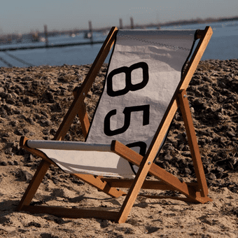 Relax in style on this classic deckchair, made from wood sourced from sustainable sources and a recycled sail cloth sling.