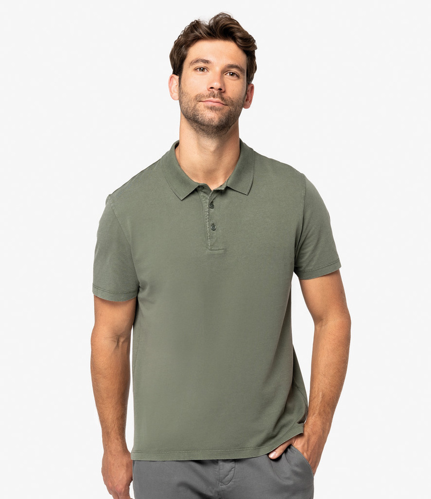 100% organic combed cotton. Jersey knit.Enzyme washed.Faded look.Straight fit.1x1 ribbed collar.Taped neck.Three recycled plastic button placket.Side vents.Tag free.Garment dyed after assembly, colours may vary slightly.Special Order items are non-stock Items ordered from the supplier. These items are non-returnable, and lead times may vary.